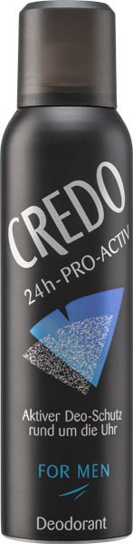 1.CREDO 24h PRO-ACTIV Deodorant For Men 150мл. Мощен мъжки дезодорант със свеж аромат и 24-часова защита. Формулата PRO-ACTIV предпазва от неприятна миризма и осигурява дълготрайно усещане за свежест. Без алуминиеви соли. Дерматологично тестван.