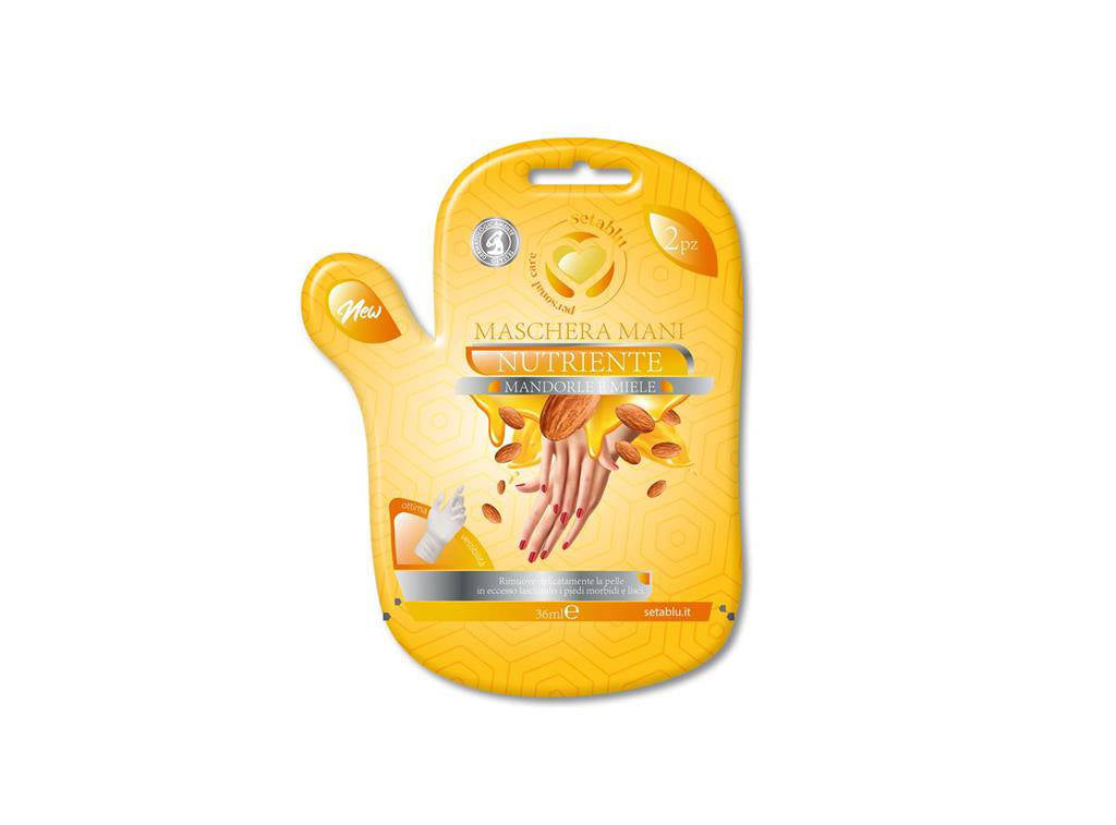 Подарете на ръцете си интензивна грижа и подхранване с маската тип ръкавичка за ръце SetaBlu с бадем и мед - идеалният продукт за суха, груба или уморена кожа.